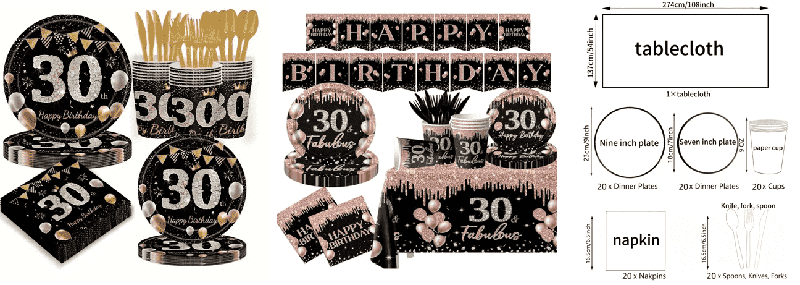 ຊຸດເຄື່ອງຕັດຂອງວັນເດືອນປີເກີດທີ່ຕ້ອງການປະກອບມີແຜ່ນເຈ້ຍ 7 ແຜ່ນ, ແຜ່ນເຈ້ຍ 9 ນິ້ວ, ຜ້າເຊັດໂຕ, ຜ້າເຊັດໂຕທີ່ຖິ້ມໄດ້, ສ້ອມ, ສ້ອມແລະບ່ວງຖິ້ມ. ການອອກແບບໂຕະແມ່ນເບົາແລະທົນທານ, ເຫມາະສົມສໍາລັບງານລ້ຽງແລະບາງແຜ່ນສະເຫຼີມສະຫຼອງ, ເຄື່ອງບິນແລະເຄື່ອງໃຊ້ໄຟຟ້າ, ລົບລ້າງຄວາມສະອາດ, ກໍາຈັດບັນຫາໃນການເຮັດຄວາມສະອາດ.