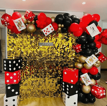 ຊຸດ garland ປູມເປົ້າຄາສິໂນສ່ວນໃຫຍ່ແມ່ນປະກອບດ້ວຍປູມເປົ້າຢາງ, ພວກເຂົາເຈົ້າມາໃນຂະຫນາດທີ່ແຕກຕ່າງກັນ (5inches, 10inches, 12inches ແລະ 18inches). ສີຂອງເຂົາເຈົ້າປົກກະຕິແລ້ວແມ່ນເດັ່ນໃນສີແດງ, ສີດໍາ, ຄໍາ, ແລະອື່ນໆ.ເພື່ອເສີມຂະຫຍາຍຜົນກະທົບ layering ຂອງຊຸດ, ທ່ານຍັງສາມາດເບິ່ງປູມເປົ້າຢາງໂປ່ງໃສແລະ confetti latex balloons.A ຫົວຂໍ້ຂອງຊຸດ, ປູມເປົ້າ foil ຫົວຂໍ້ຄາສິໂນຍັງຂາດບໍ່ໄດ້.