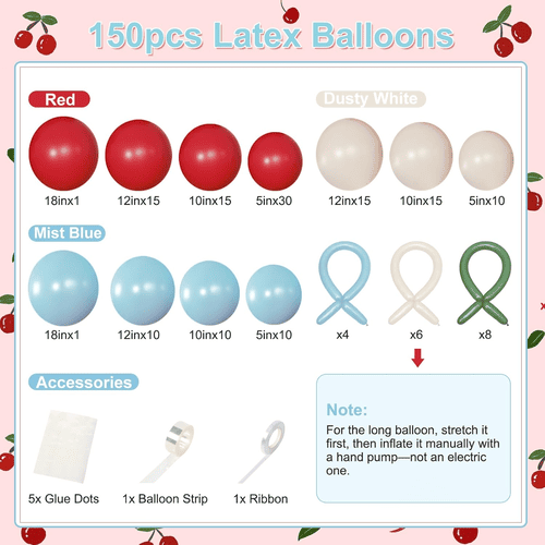 ປູມເປົ້າດອກໄມ້ Cherry ມາພ້ອມກັບປູມເປົ້າຢາງຕ່າງໆ, ລວມທັງປູມເປົ້າຢາງຮອບ ແລະປູມເປົ້າຢາງຍາວ. ຮູບແບບທັງຫມົດຂອງຊຸດແມ່ນໃນທາງບວກແລະຫນ້າຮັກ, ມັນໄດ້ຖືກຮັກແພງໂດຍລູກຄ້າທົ່ວໂລກ. ສີຂອງປູມເປົ້າຢາງຮອບແມ່ນສີແດງ, ສີຂາວຂີ້ຝຸ່ນ ແລະສີຟ້າອ່ອນ. ແລະສໍາລັບປູມເປົ້າຢາງຍາວແມ່ນສີຟ້າ mist, ສີຂາວຂີ້ຝຸ່ນແລະສີຂຽວ, ປູມເປົ້າຢາງຍາວຖືກນໍາໃຊ້ເພື່ອເຮັດໃຫ້ແບບ bow tie ແລະແບບ cherry.