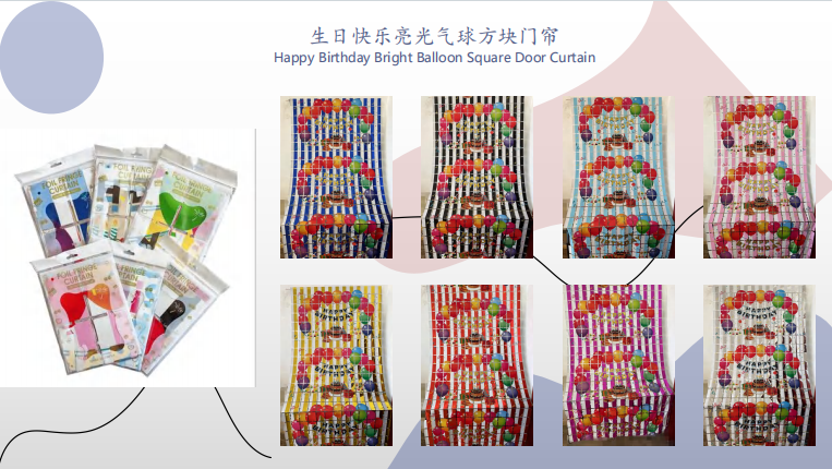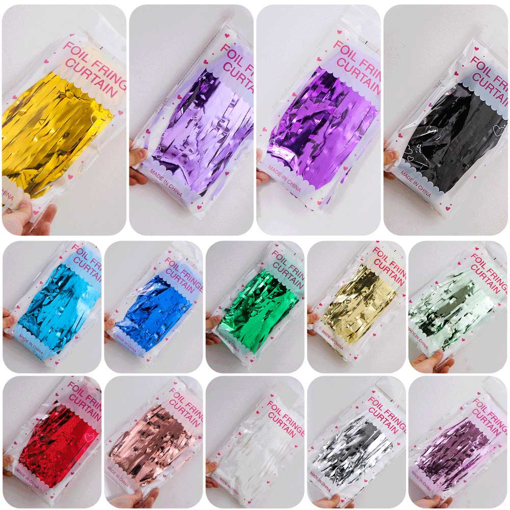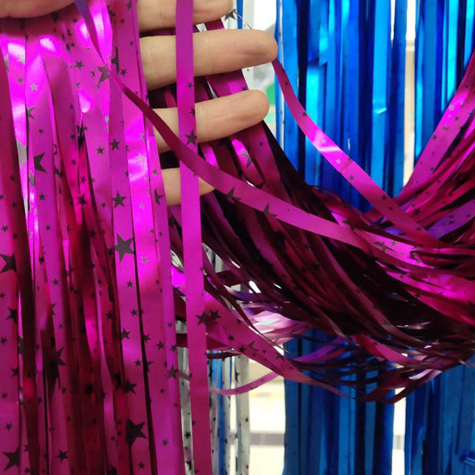 ຜ້າມ່ານ foil ກັບສີ rainbow, ສີ macaroon ແລະການປະສົມສີອື່ນໆແມ່ນເຫມາະສໍາລັບງານລ້ຽງວັນເກີດຂອງເດັກນ້ອຍ. ນອກນັ້ນຍັງມີຜ້າມ່ານດອກໄມ້ເຫຼື້ອມເຊັ່ນ: ຄໍາແລະເງິນ, ເຊິ່ງເຫມາະສໍາລັບງານລ້ຽງວັນເກີດຂອງຜູ້ໃຫຍ່, ແລະອື່ນໆ.