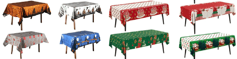 ຍົກຕົວຢ່າງ, ຜ້າປູໂຕະແຜ່ນແພທີ່ມີຫົວຂໍ້ສີທຸງຊາດ (ສີແດງທອງແດງ, ສີແດງ) ສາມາດໃຊ້ສໍາລັບການຈັດກິດຈະກໍາຫົວຂໍ້ຂອງ desperiotic. ຫົວຂໍ້ເກມແຂ່ງລົດສີດໍາແລະສີຂາວ, ຫົວຂໍ້ Princess, ຫົວຂໍ້ໄດໂນເສົາຂອງຜ້າປູໂຕະ foil, ສາມາດໃຊ້ສໍາລັບງານລ້ຽງຫົວຂໍ້, ກິດຈະກໍາເດັກນ້ອຍ - ພໍ່ແມ່ - ກິດຈະກໍາ; ແບບຈໍາລອງທີ່ສຸດຄໍາແມ່ນເຫມາະສໍາລັບງານລ້ຽງທຸລະກິດ, ການປະຊຸມປະຈໍາປີຂອງບໍລິສັດແລະໂອກາດທາງການອື່ນໆ.