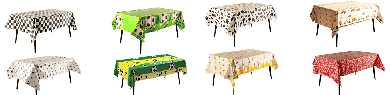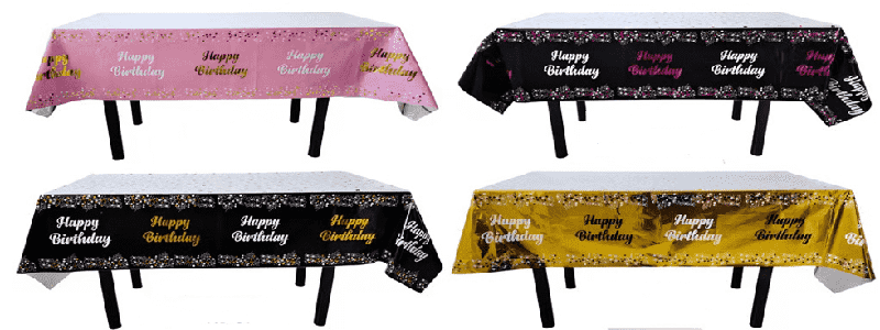 ສີສາຍຮຸ້ງ, ຟອກຜ້າປູໂຕະທີ່ມີສັດແລະຮູບແບບເຄັກ, ເຫມາະສໍາລັບງານລ້ຽງວັນເກີດຂອງເດັກນ້ອຍ; ຄໍາ, ເງິນ, ສີເລນທີ່ມີຮູບແບບແລະຮູບແບບຕົວອັກສອນ, ພາກສ່ວນວັນເກີດຂອງເດັກນ້ອຍ, ຕາຕະລາງພັກແຮມ, ຮ້ານກິນເຂົ້າປ່າ, ຕາຕະລາງການກິນເຂົ້າແລະອື່ນໆ.