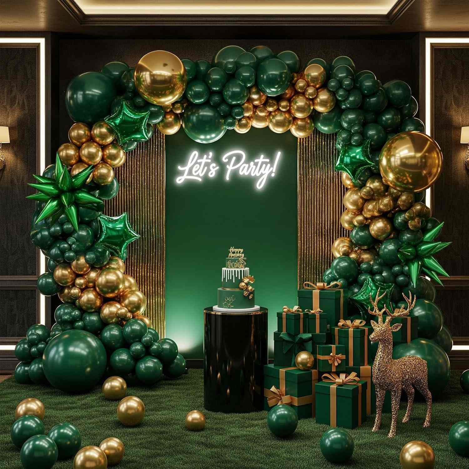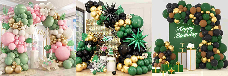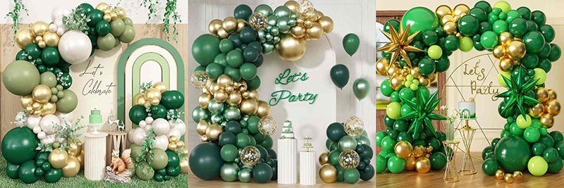 ທ່ານສາມາດໃຊ້ປູມເປົ້າສີຂາວຫລືສີຂາວທີ່ມີສີຂຽວແລະ Gold Balloon Arch. ມັນຈະກາຍເປັນທີ່ອ່ອນແລະອົບອຸ່ນແລະຄ້າຍຄືກັບການຈັບຄວາມສົດຂອງສວນສະຫນາມກິລາ; ໃນເວລາທີ່ຈັບຄູ່ກັບປູມເປົ້າສີສີບົວ, ມັນສາມາດສ້າງຄວາມຮູ້ສຶກທີ່ມີຊີວິດຊີວາທີ່ຫວານທີ່ບໍ່ມີຄວາມສຸກໂດຍບໍ່ມີຄວາມຫຼົງໄຫຼ, ເຮັດໃຫ້ບັນຍາກາດຮັກສາຄວາມຮັກແລະພັກທີ່ມີຊື່ສຽງແລະໄວຫນຸ່ມ; ເຖິງແມ່ນວ່າໃນເວລາທີ່ປະສົມປະສານກັບສີທີ່ເລິກແລະສີນ້ໍາຕານ, ສີຂຽວແລະສີທອງສາມາດມີຄວາມຫມັ້ນຄົງຂອງຄວາມເຄັ່ງຕຶງຂອງຄວາມເຄັ່ງຕຶງທີ່ໂດດເດັ່ນ, ເຮັດໃຫ້ມີຄວາມເຄັ່ງຕຶງໃນການແຕ່ງຕົວທີ່ທັນສະໃຫມ.