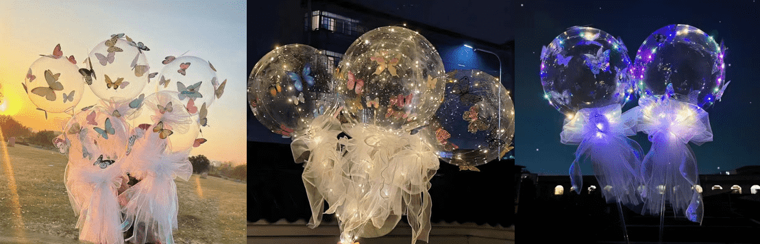 ປູມເປົ້າ Bobo ເອງແມ່ນໂປ່ງໃສແລະງ່າຍດາຍ, ເຊິ່ງມີຄວາມສອດຄ່ອງສູງກັບຄວາມຍືດຫຍຸ່ນຂອງແສງສະຫວ່າງຂອງສະຕິກເກີ butterfer. ການນໍາໃຊ້ສະຕິກເກີຫຼັກແມ່ນເພື່ອຍົກລະດັບບານ monotonous ກັບບານ suspension ເຕັ້ນ butterfly, ແລະເຮັດໃຫ້ປູມເປົ້າຂອງຮູບສາມມິຕິຂອງ butterfly ແລະເງົາ. ກິດຈະກໍາວັນເກີດຂອງເດັກນ້ອຍ, ເຂດວັນເກີດຂອງຜູ້ໃຫຍ່, ງານແຕ່ງງານ, ການຄ້າຮຽນການຄ້າ, ການຕົບແຕ່ງເຮືອນພັກຜ່ອນແມ່ນເຫມາະສົມທີ່ສຸດ. ໃນຕອນກາງຄືນ, ມັນຍັງສາມາດຖືກຈັບຄູ່ກັບໄຟ LED, ເຊິ່ງເປັນຕາຈັບຕາຫຼາຍ.