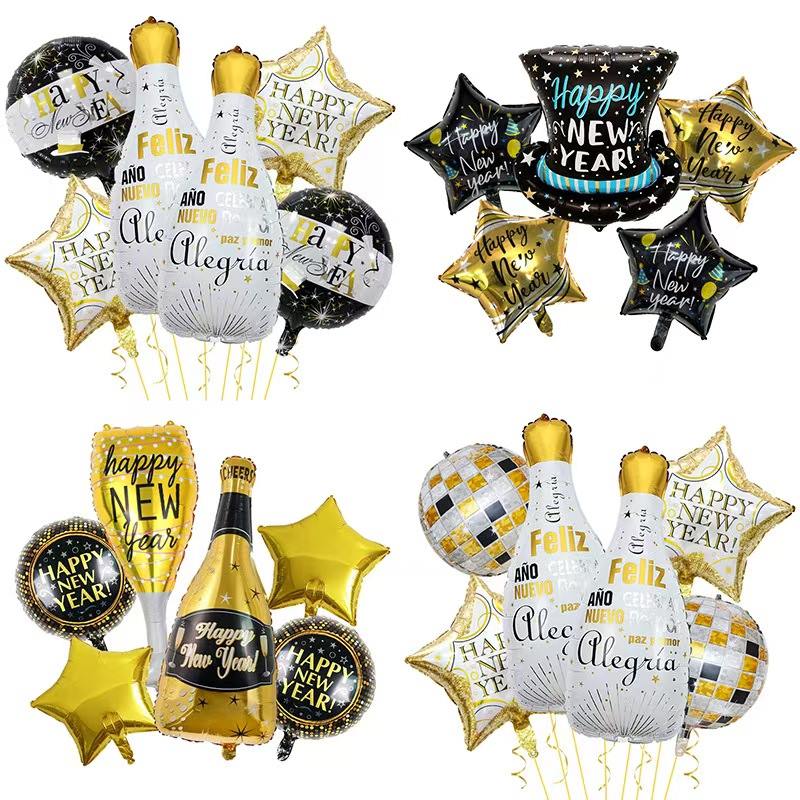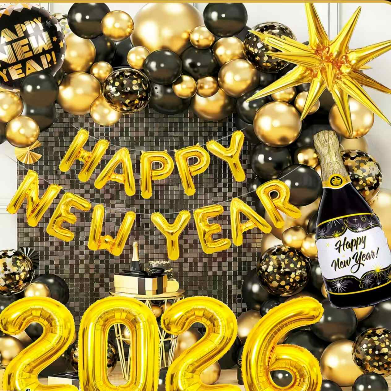 ຄິດກ່ຽວກັບຊຸດປີໃຫມ່ທີ່ກໍານົດໄວ້. ມັນມີປູມເປົ້າ foil ທີ່ຄ້າຍຄືຂວດ champagne. ມັນຍັງປະກອບມີ "2026" ປູມເປົ້າຈໍານວນ, ດາວຕົກແຕ່ງ Star ແລະອື່ນໆ. ສີຕົ້ນຕໍແມ່ນຄໍາສີດໍາຫລືສີຂາວຄໍາ. ມັນເຕັມໄປດ້ວຍຄວາມເບີກບານມ່ວນຊື່ນຂອງປີໃຫມ່. ມັນສາມາດເຮັດໃຫ້ການສະແດງລະຄອນພັກປີໃຫມ່ໄດ້ຢ່າງງ່າຍດາຍແລະພິທີການ.