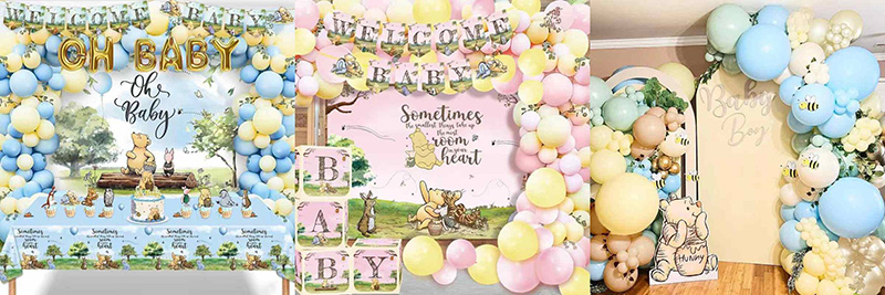 ແບບແມ່ນສຸມໃສ່ Winnie ແບບຄລາສສິກຂອງ Pooh IP. ມັນປະສົມຮູບພາບຂອງຫມູ່ເພື່ອນທີ່ຫນ້າຮັກຫຼາຍຄົນ. ເພື່ອນເຫຼົ່ານີ້ປະກອບມີ Tigger ແລະ Piglet. ມັນໄປກັບປູມເປົ້າໃນສີ macaron ສົດ. ສີແມ່ນສີຟ້າອ່ອນ, ສີບົວ, ສີເຫຼືອງ, ສີຂຽວແລະອື່ນໆ. ມັນເປັນສິ່ງທີ່ດີສໍາລັບງານລ້ຽງຂອງເດັກຊາຍເດັກນ້ອຍ. ມັນກໍ່ດີສໍາລັບງານລ້ຽງຂອງເດັກນ້ອຍຍິງ. ທ່ານສາມາດຊອກຫາແບບສີທີ່ເຫມາະສົມ. ຍົກຕົວຢ່າງ, ຊຸດສີຟ້າສະແດງໃຫ້ເຫັນຄວາມສໍາຄັນຂອງເດັກຊາຍ '. ຊຸດສີບົວແມ່ນເຕັມໄປດ້ວຍຄວາມຫວານຂອງເດັກນ້ອຍແລະຄວາມງາມ.